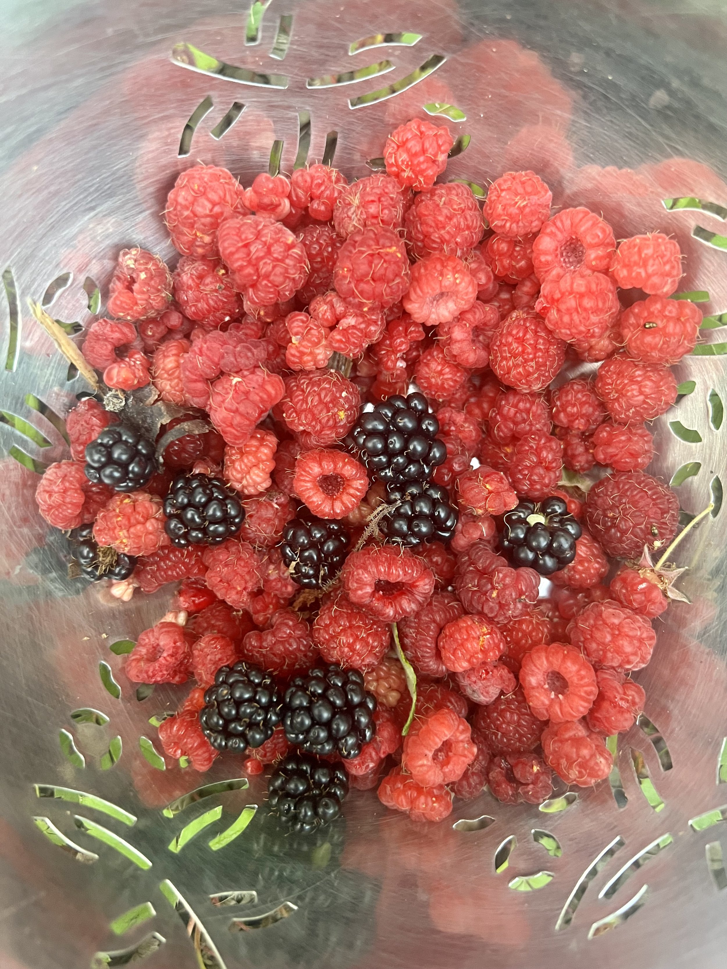 Picking raspberries for several weeks sent me on an inward journey. Rushing through the picking process was my learning. Slowing down brought calm that enveloped me. The ground a sacred space to kneel upon, hands careful and tender, my large basket never full.