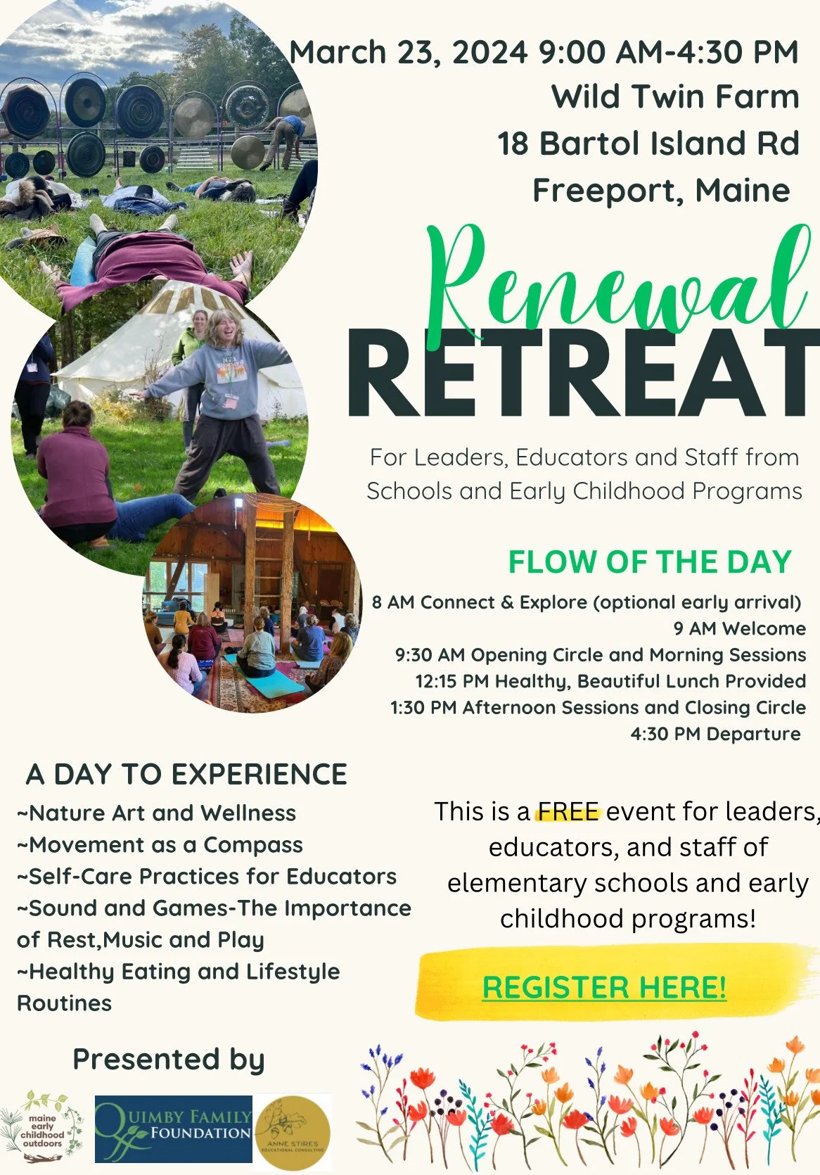 Join us at Wild Twin Farm for a nature-connected day to ground, create, rest and rejuvenate. Immerse yourself in sound healing, yoga, art, play, nourishing foods, mindfulness and reflection. This is a FREE event for educators in the United States. Register here.